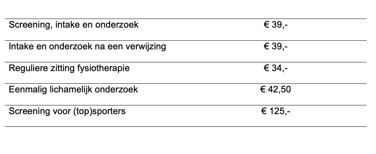 Na het onderzoek bespreek ik met u het behandelplan en start gelijk de eerste zitting fysiotherapie. U krijgt gelijk dezelfde dag het plan te horen en kunt u vanaf dag 1 aan de slag met uw klacht. Hou hierdoor rekening met een eerste sessie van 60 min.
